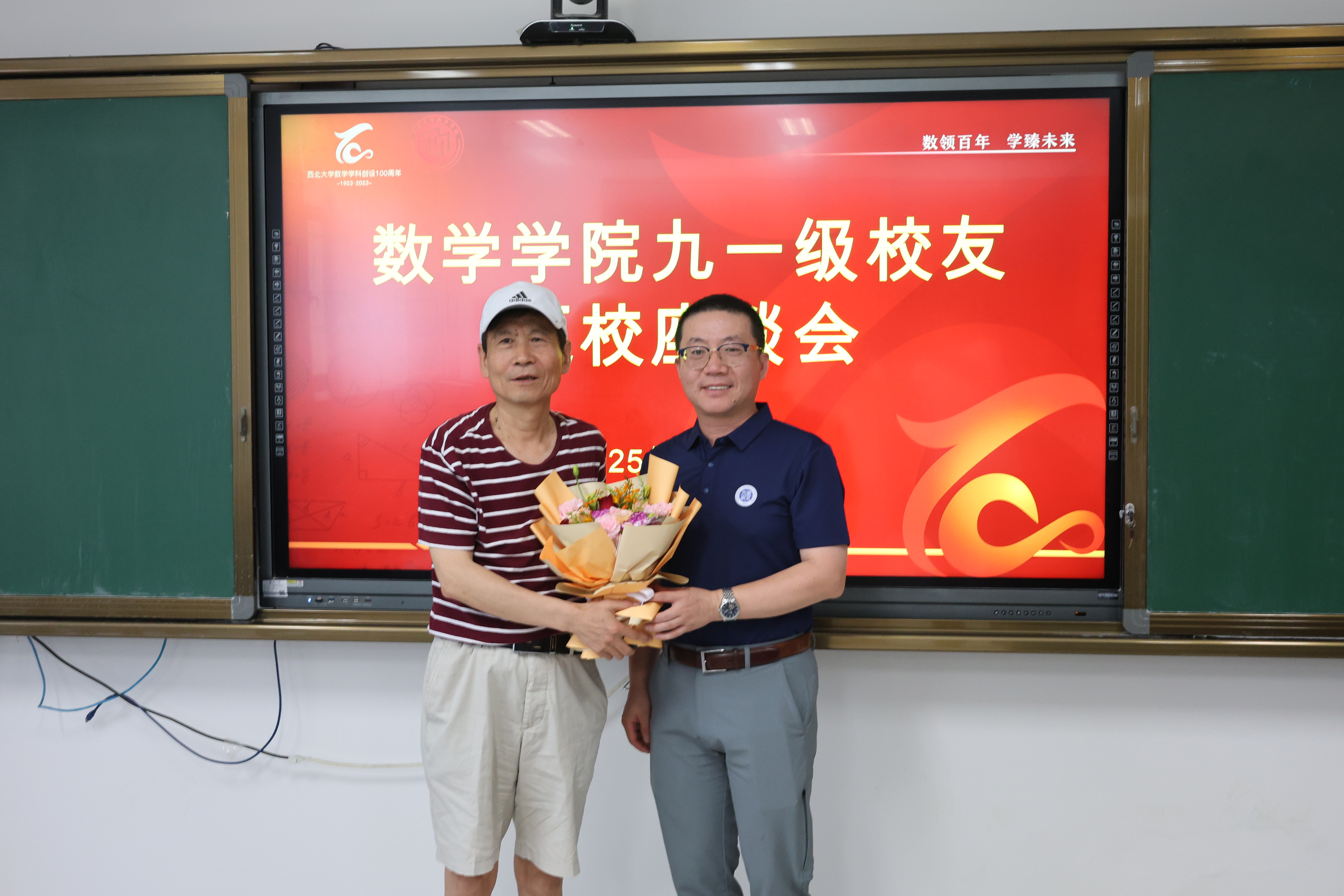 随后,校友代表向三位参会教师敬献鲜花,以谢师恩。