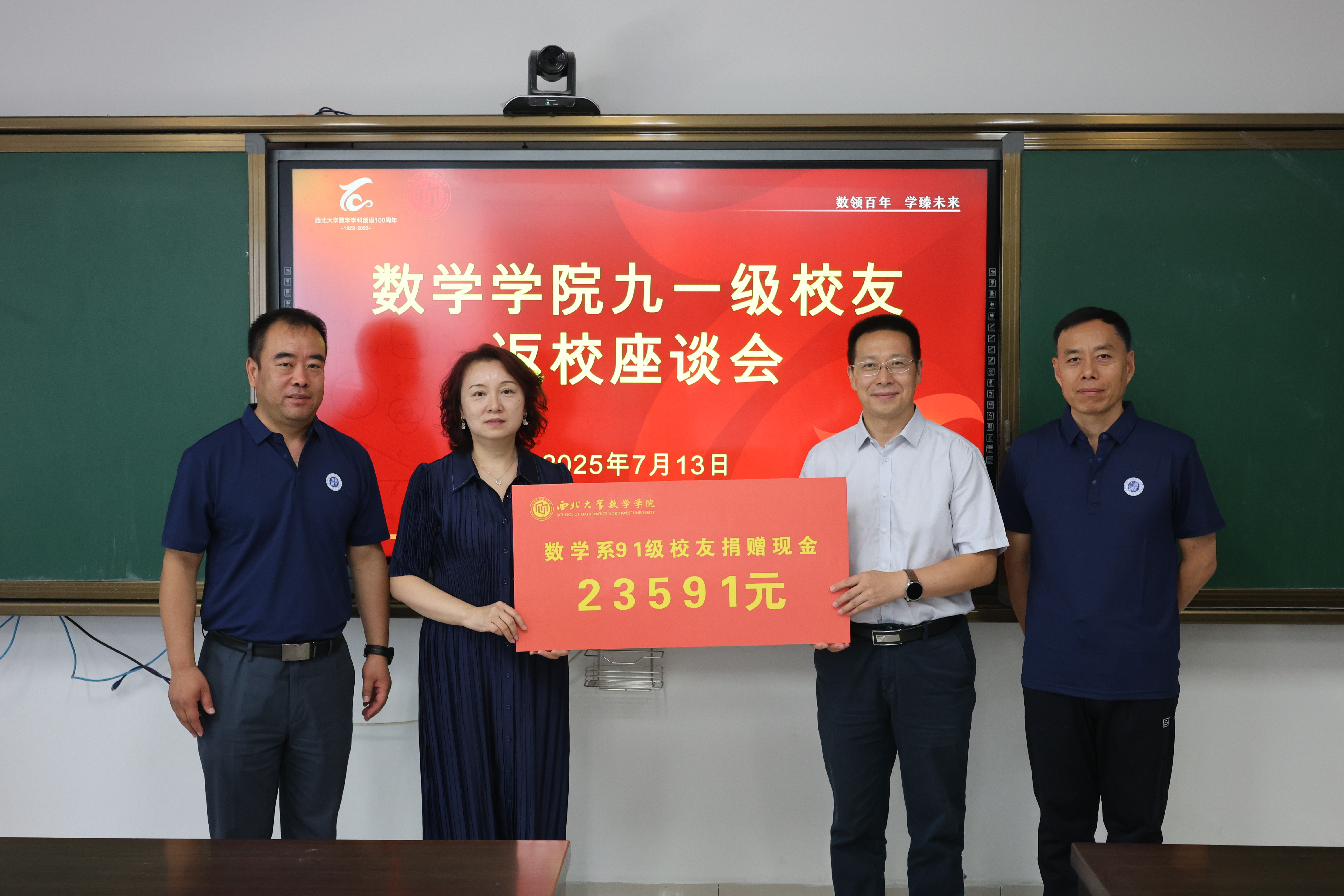 座谈会上,段福庆、胡永利两位校友代表1991级全体同学向学院捐款,数学学院则向每位返校校友赠送了寓意深厚的蓝田玉印章以作纪念。