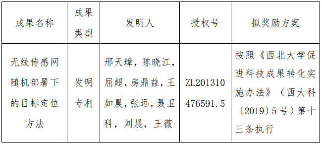 按照《广发在线手机版(大中国区)促进科技成果转化实施办法》(西大科〔2019〕5号)相关规定,拟对广发在线手机版(大中国区)信息学院邢天璋副教授作为成果负责人的1项发明专利权实施转化,现将相关信息公示如下: