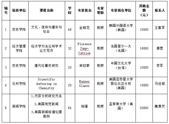 各研究生培养单位: 本学期继续资助研究生参加高水平国际学术会议、研究生国际访学、高端专家短期课程教学等国际化牵引项目,经个人申请,单位推荐,研究生院院务会决定,现将具体立项名单予以公布(详见附表)。 请各相关立项项目负责人在会议、访学、课程结束后一个月内携带相关证明材料前来办理报销手续,报销说明见附件。 未尽事宜请咨询研究生教学办公室,电话88308163。 附表: 1.高水平国际会议资助项目立项名单 2.研究生访学资助项目立项名单 3.高端专家短期课程教学资助项目立项名单 4.出版资助项目立项名单 附件:报销说明
