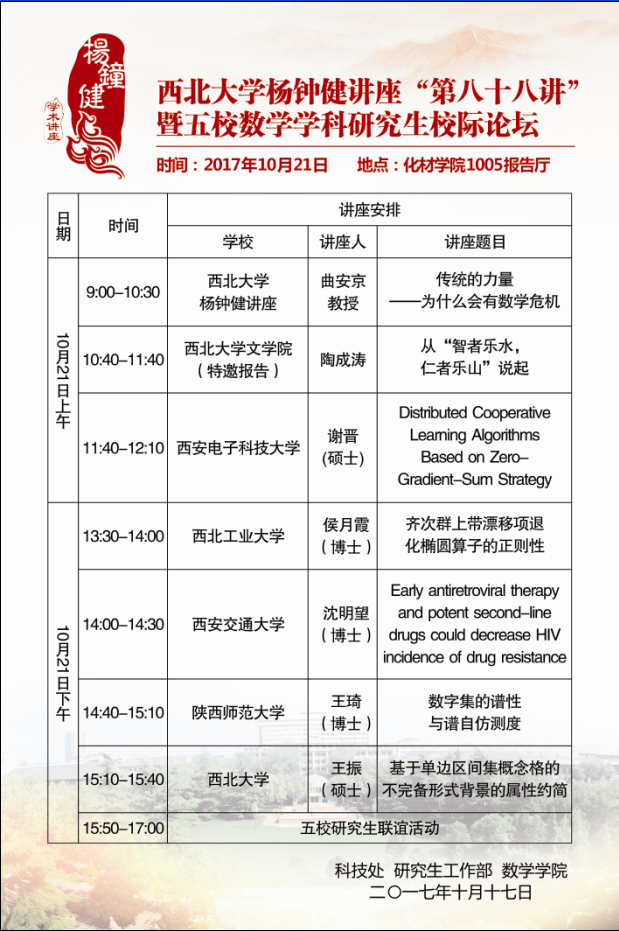 广发在线手机版(大中国区)杨钟健讲座“第八十八讲”暨五校数学学科研究生校际论坛