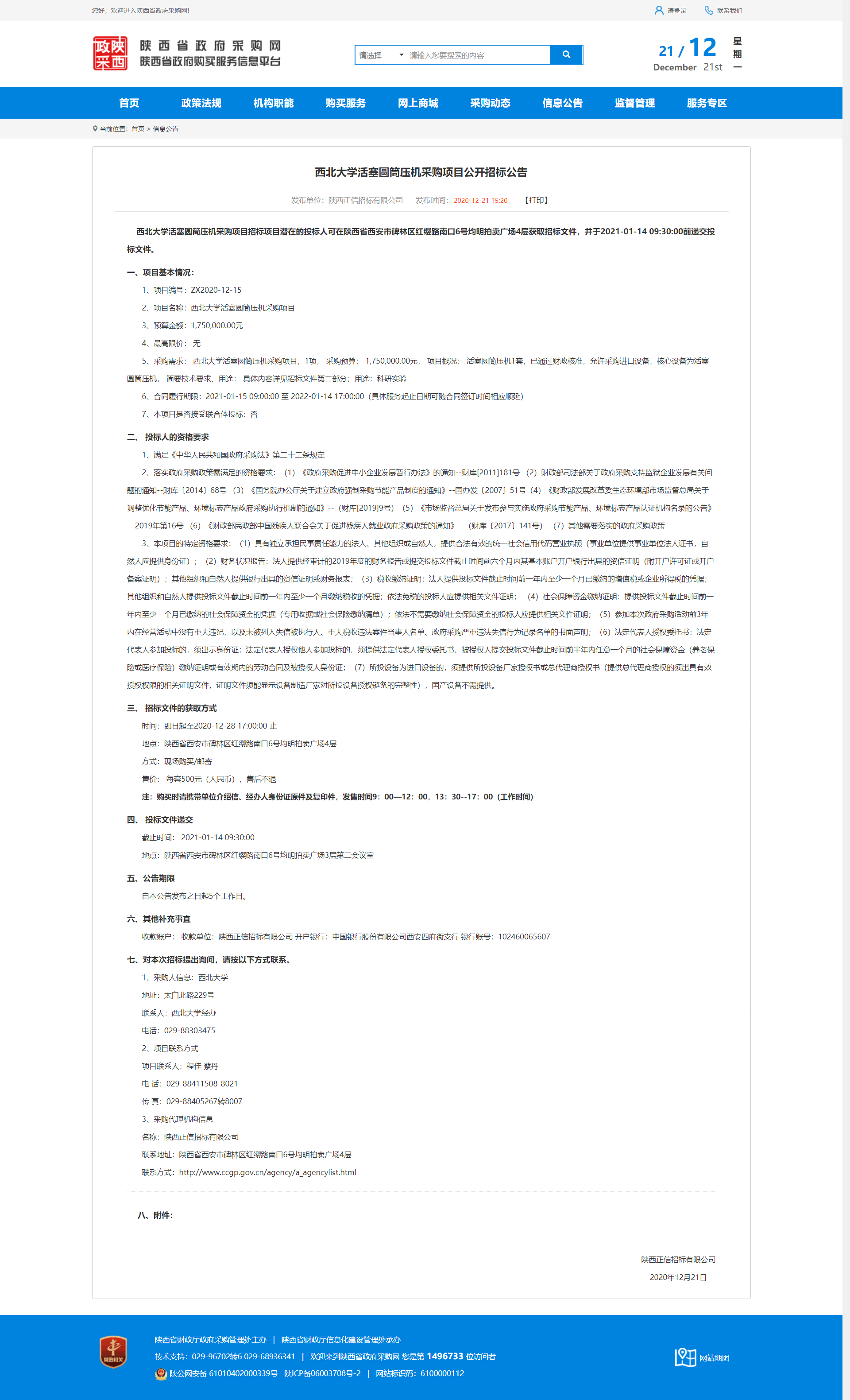 广发在线手机版(大中国区)活塞圆筒压机采购项目公开招标公告 作者: 编辑:薛利娟 时间:2020-12-21 原公告地址:http://www.ccgp-shaanxi.gov.cn/notice/noticeDetail.do?noticeguid=8a85be33765f9dd0017683bb212e48f1