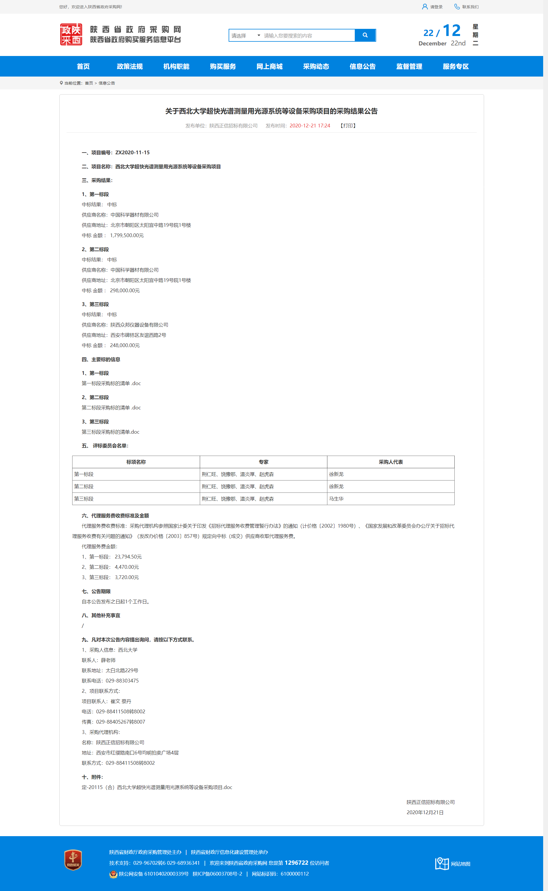 关于广发在线手机版(大中国区)超快光谱测量用光源系统等设备采购项目的采购结果公告 作者: 编辑:薛利娟 时间:2020-12-22 原公告地址:http://www.ccgp-shaanxi.gov.cn/notice/noticeDetail.do?noticeguid=8a85be33765f9dd001768497df5d65ae