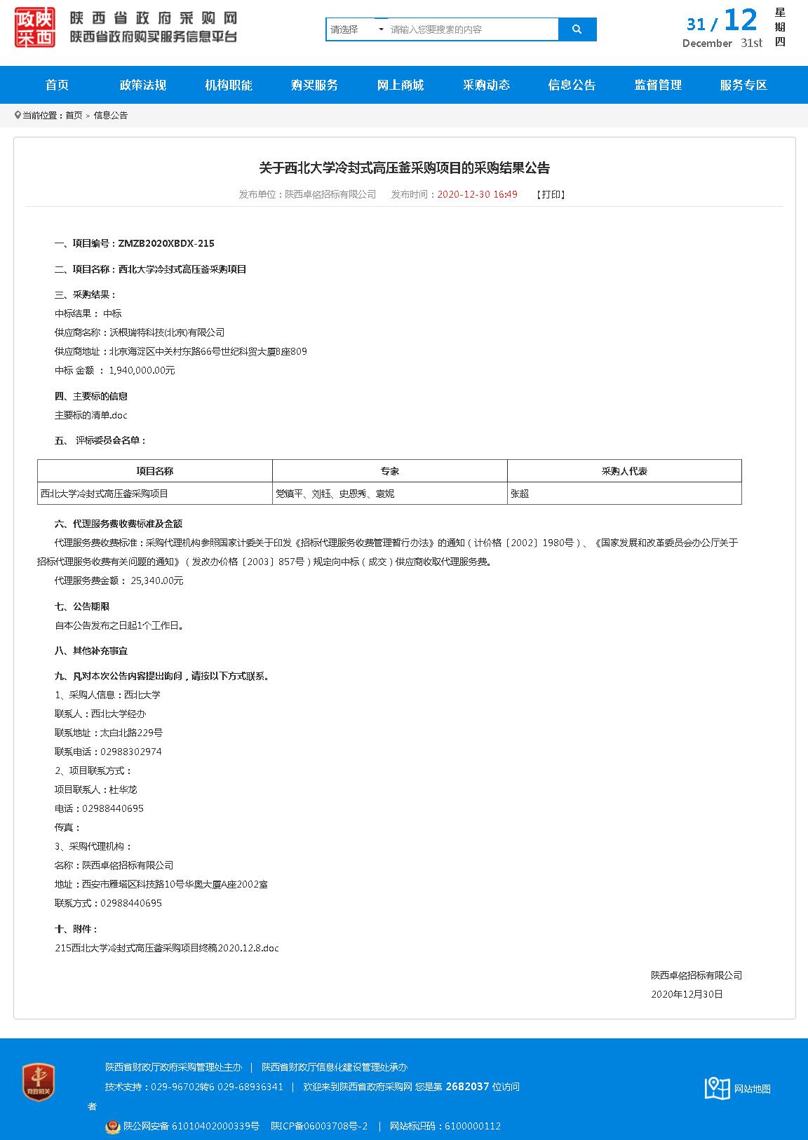 广发在线手机版(大中国区)冷封式高压釜采购项目的采购结果公告