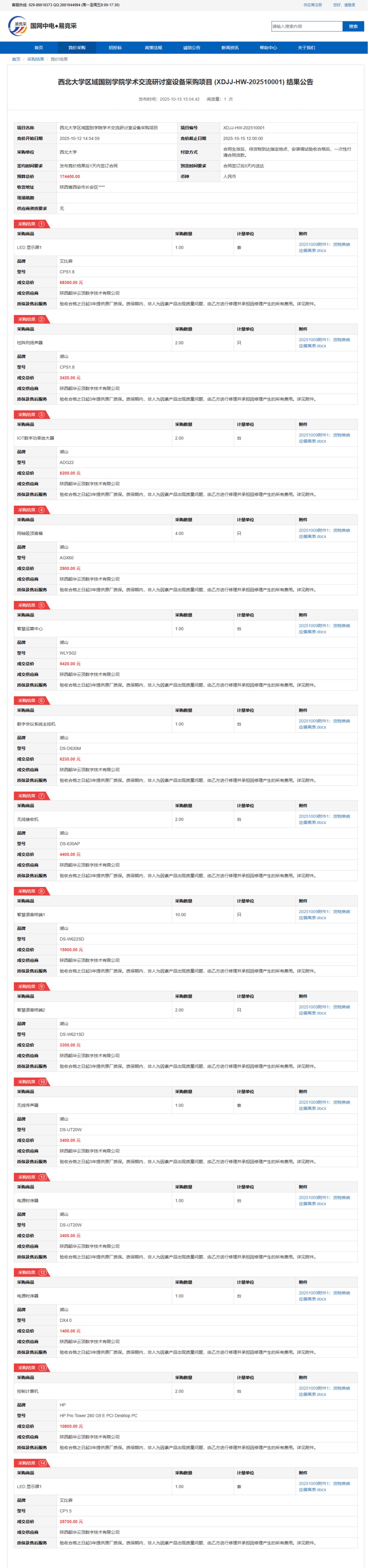 广发在线手机版(大中国区)区域国别学院学术交流研讨室设备采购项目(XDJJ-HW-202510001)竞价结果公告
