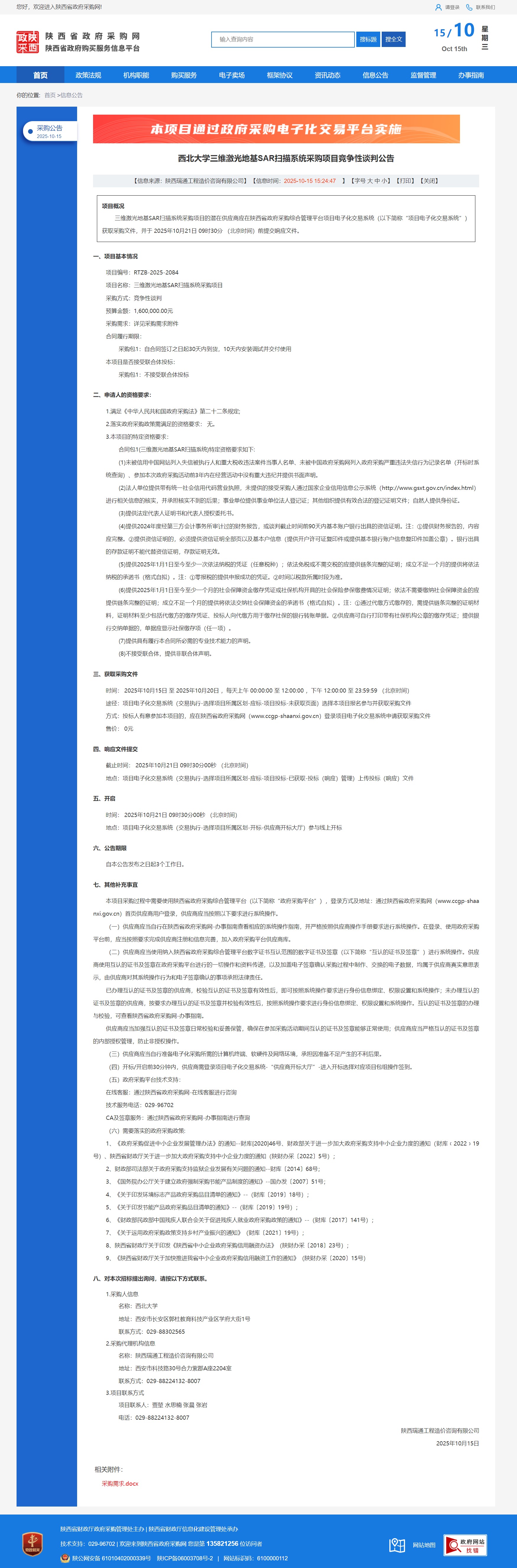 广发在线手机版(大中国区)三维激光地基SAR扫描系统采购项目竞争性谈判公告