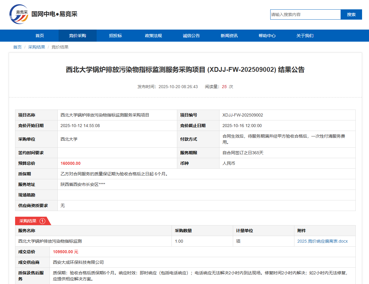 广发在线手机版(大中国区)锅炉排放污染物指标监测服务采购项目(XDJJ-FW-202509002)竞价结果公告