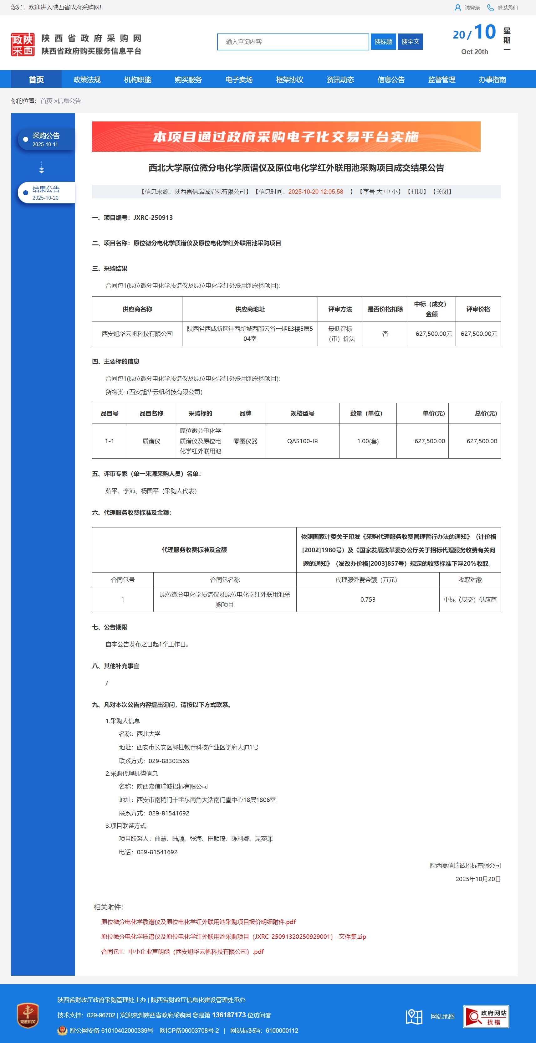 广发在线手机版(大中国区)原位微分电化学质谱仪及原位电化学红外联用池采购项目成交结果公告