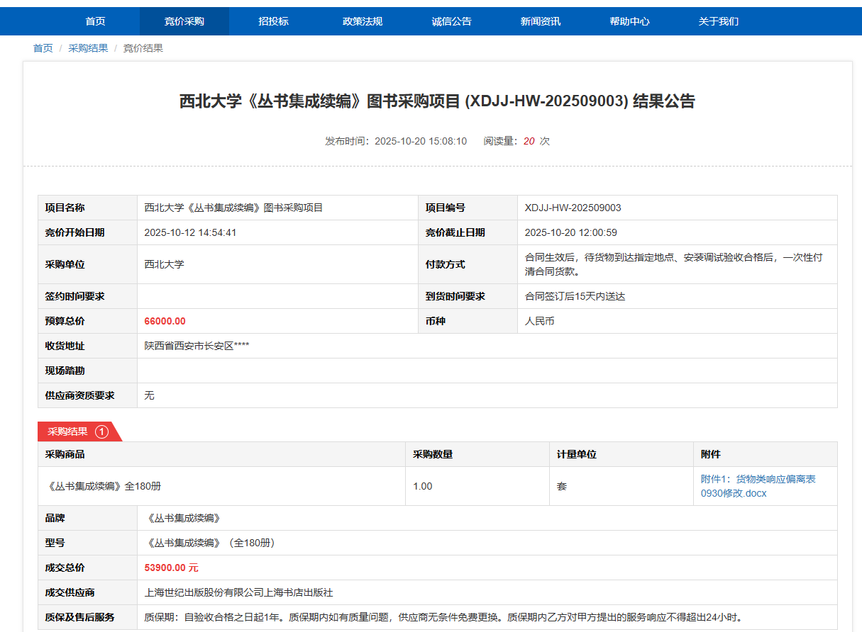 广发在线手机版(大中国区)《丛书集成续编》图书采购项目(XDJJ-HW-202509003)竞价结果公告
